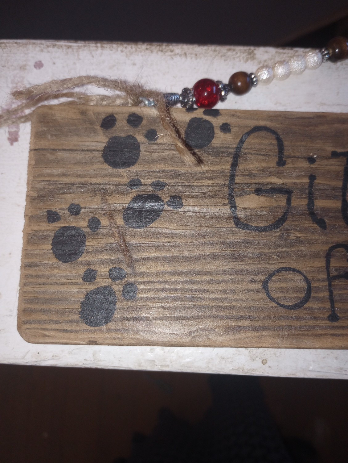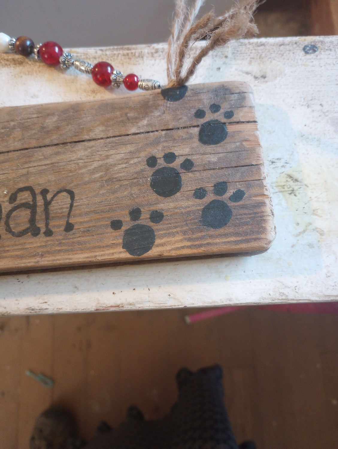 Hand painted by me from reclaimed lumber in the U.S. This piece is for the dog lover, with cute little whimsical dog paw prints and whimsical font. Fits a farm or primitive decor. This price includes shipping by U.S. Mail within the continental U.S.