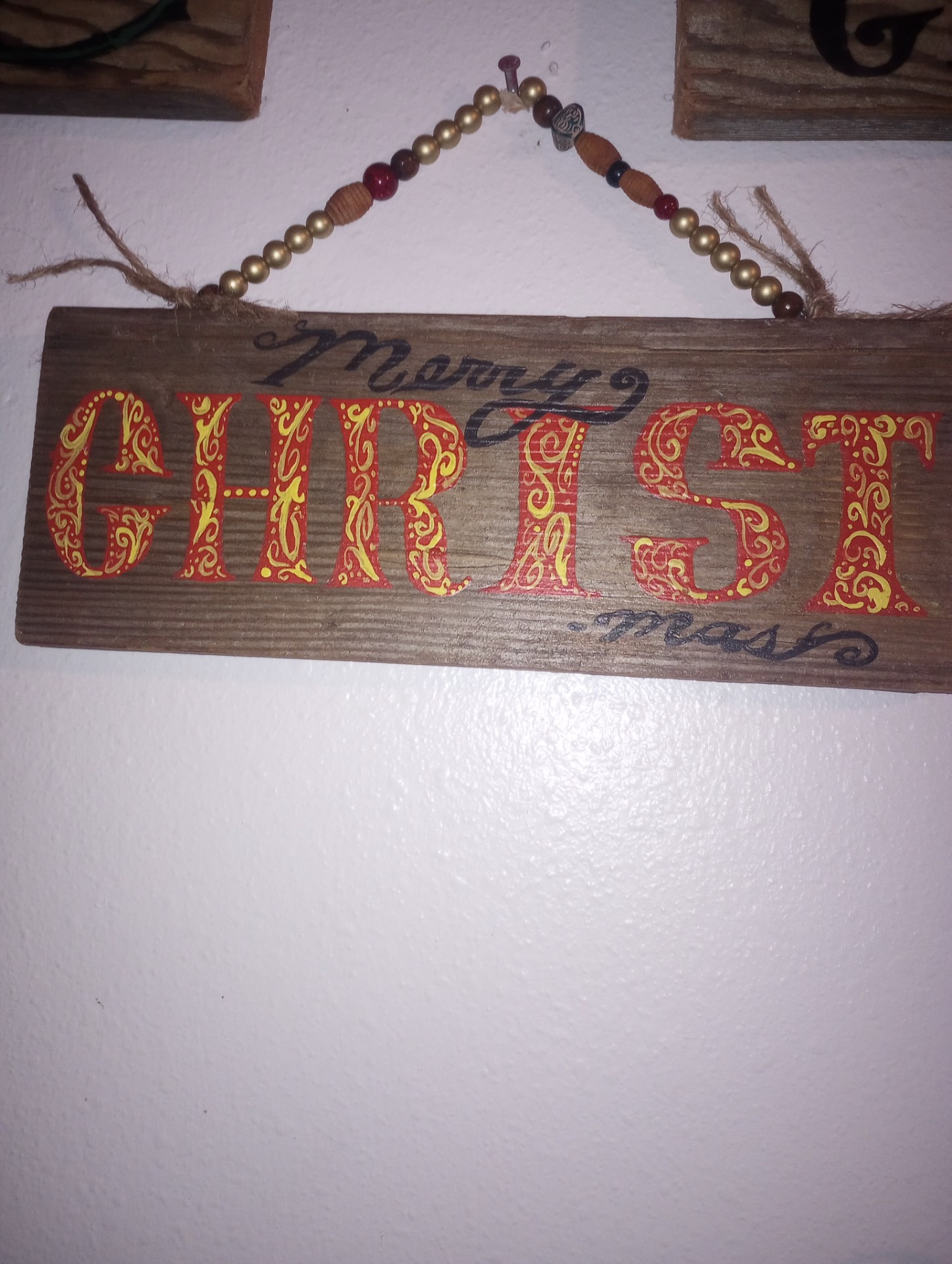 MADE IN USA by local artist! Farm decor wall hanging for the holidays with an emphasis on CHRIST. Goes great in the kitchen, or as a gift for the wannabe farmer in your life (much like me). These were hand painted by me, each piece unique. Made from reclaimed lumber, jute string, and random accent beads for a rustic farmhouse feel.