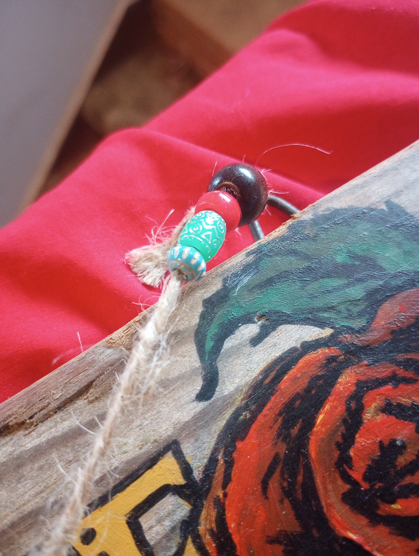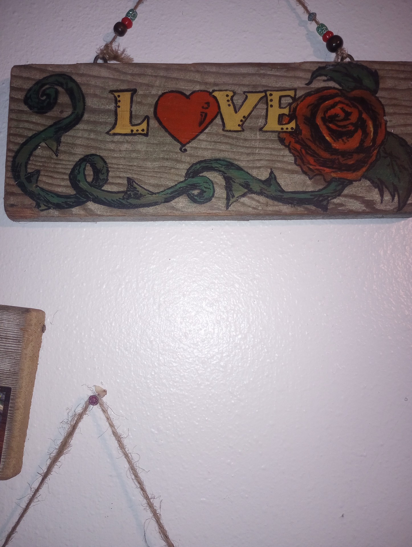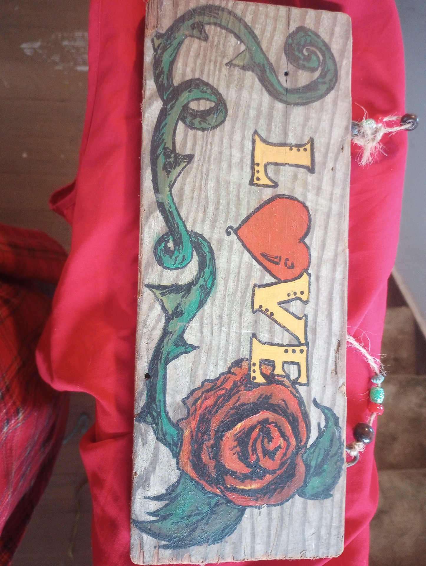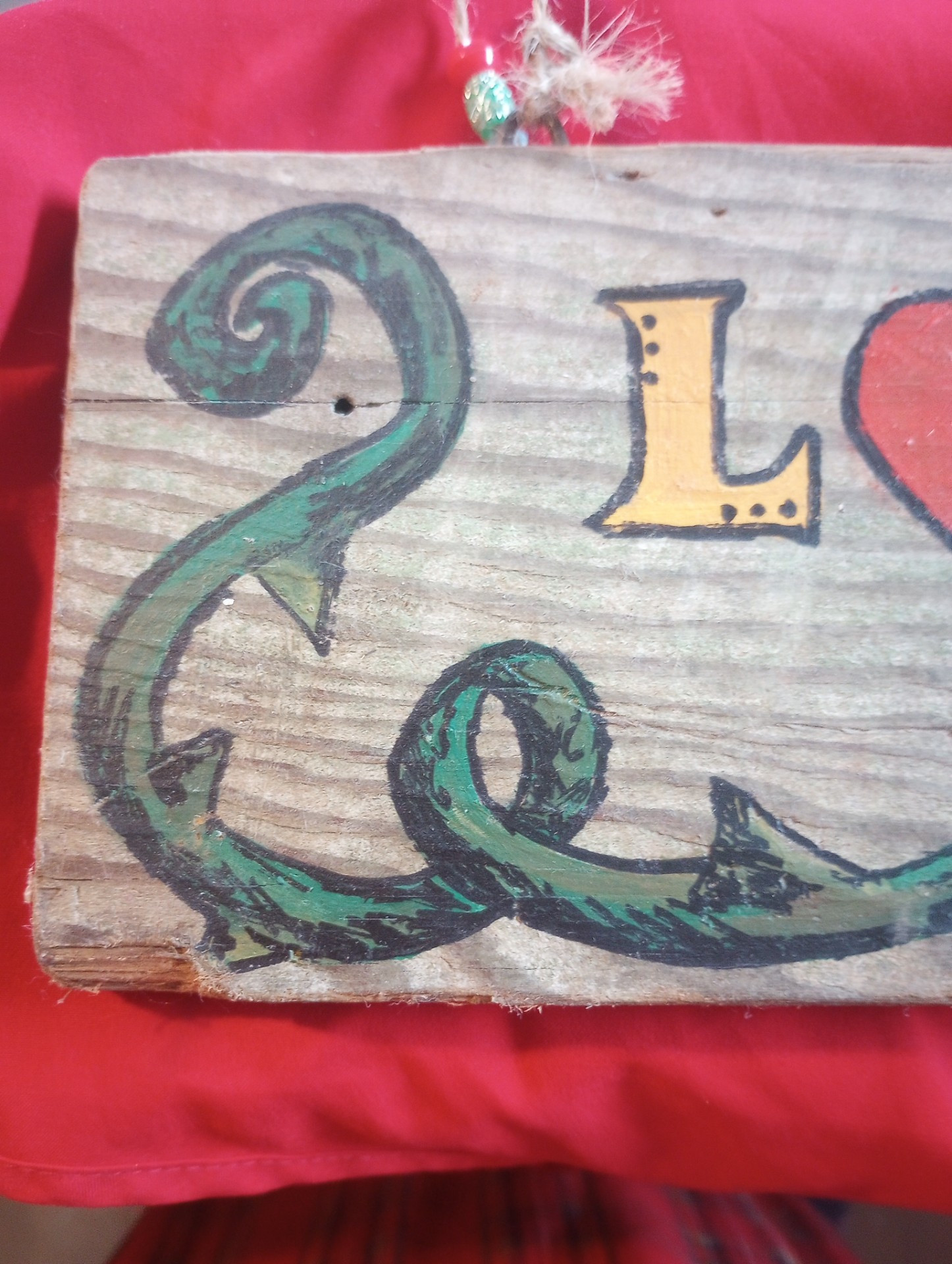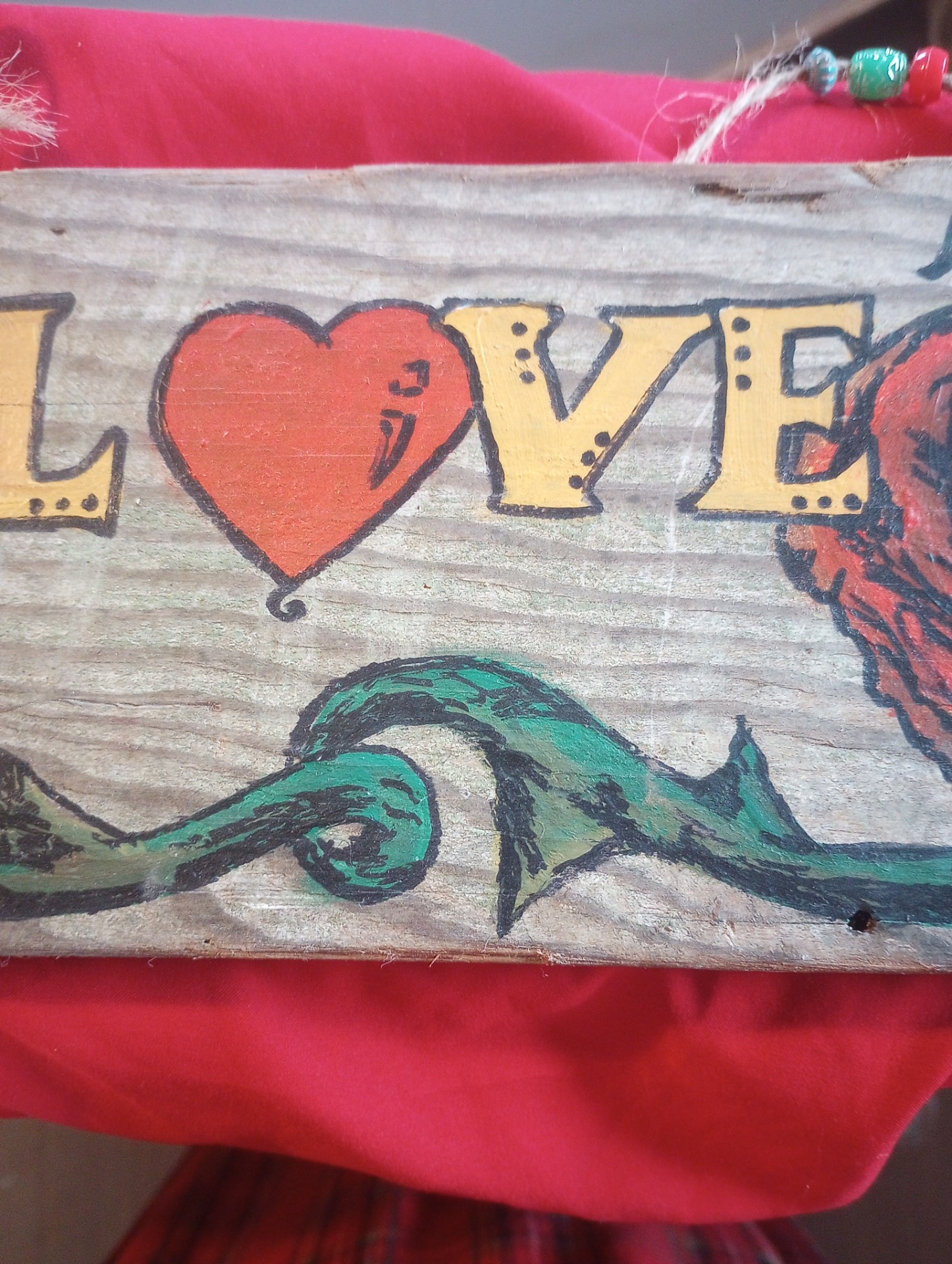 This piece is completely unique and original, hand painted by me and inspired by tattoo art. It is painted on reclaimed lumber and has jute string with bead accents and fence staples. It will be a good fit in rustic or farm decor, or just a fun piece around the house, with its artistic font. This price includes free shipping by U.S. Mail within the continental U.S.